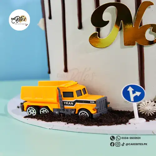Finished with a chocolate drip, personalised name topper, and optional age number, this cake is perfect for birthdays and themed celebrations. A guaranteed hit for any little builder!