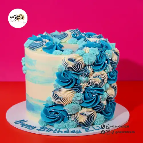 This elegant cake offers full customisation to suit your celebration. Choose your preferred base and piping colours, with options to add luxurious touches of gold and a variety of decorative toppings. Each cake is adorned with intricate buttercream swirls and delicate pearls. The cake in the image is a 6″.