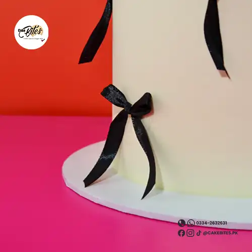 Make a bold statement with our elegant bow cake. You can choose the base and ribbon colour to suits your theme. Perfect for chic celebrations, from birthdays to sophisticated soirées. The cake in the image shown is a 6″.