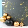 Featuring a striking solid base colour (shown in black) with gold splatter detailing and a cluster of metallic spheres in gold and a complementary shade. The bold gold charm can be customised with your chosen name or age, making this design perfect for birthdays, anniversaries, and special occasions.