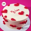 Featuring a smooth base with bold piped buttercream hearts, this cake is simple yet heartfelt. Both the base and heart colours are customisable. Perfect for sharing with someone you love. The cake in the image shown is a 6″.