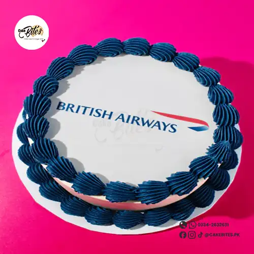 This cake features a smooth base and elegant piped borders, creating a clean and sophisticated look. You can choose the colours for both the base and the piped borders and can also personalise it with your logo on top. The cake in the image is a 6″.
