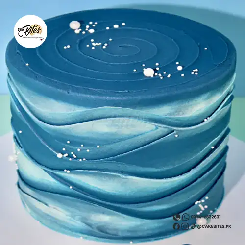 This elegant cake features a wavy buttercream texture with delicate pearl accents, perfect for birthdays, weddings or anniversaries. The colour of the cake can be customised and the size in the example shown is a 6″.
