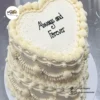Featuring smooth iced tiers finished with intricate hand-piped swirls, scalloped detailing, and delicate pearl accents, this cake embodies traditional craftsmanship with a refined, contemporary finish. The softly piped borders frame the cake beautifully, while the option to include a meaningful iced message adds a personal touch to your celebration.